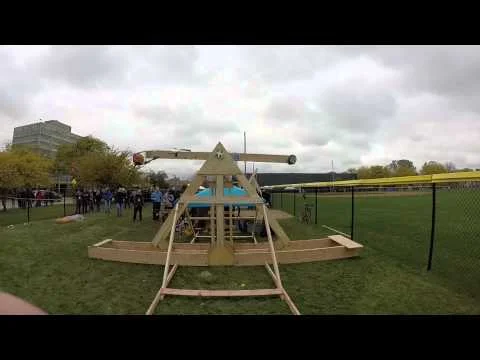MACH 2 is a centrifugal catapult that took first place in distance and second place in accuracy at the 2014 IIT Pumpkin Launch. Its longest shot isn't on official record, but comes in at 331 feet.